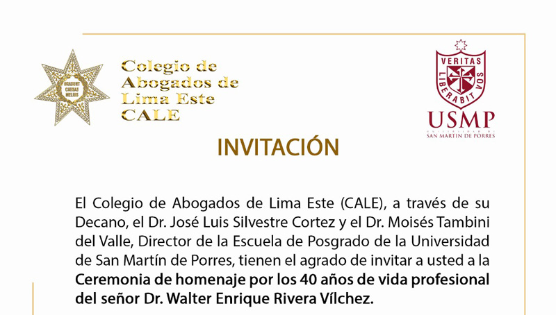 CALE rinde homenaje al Dr. Walter Enrique Rivera Vílchez por sus 40 años de vida profesional e incorpora al destacado jurista como Miembro Honorario