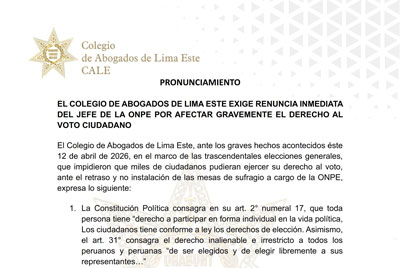 El Colegio de Abogados de Lima Este, ante los graves hechos acontecidos éste 12 de abril de 2026, en[…]