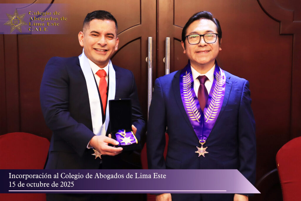 El pasado 15 de octubre del presente año, el Colegio de Abogados de Lima Este (CALE) llevó a cabo una significativa Ceremonia de Colegiatura, en la cual se incorporó oficialmente a la orden el Abogado Elio Fernando Riera Garro, quien juró cumplir fielmente los deberes éticos y profesionales que exige la abogacía.