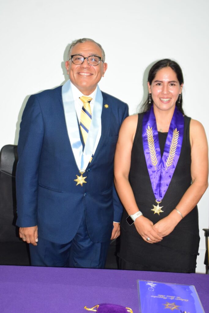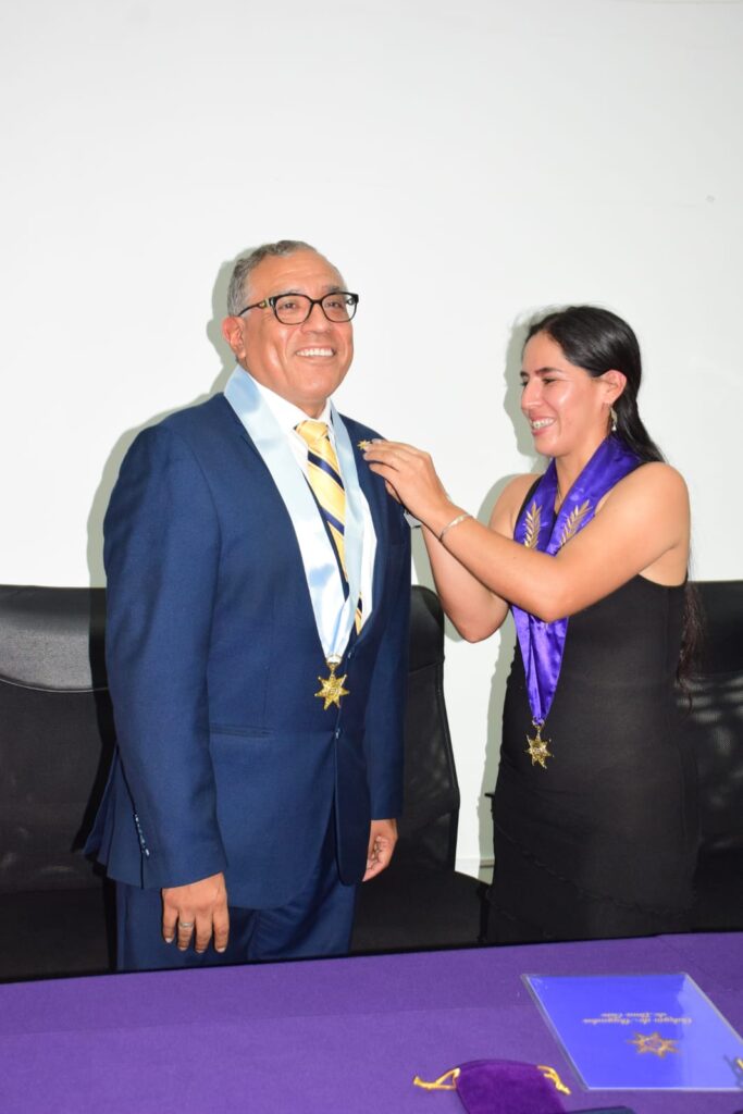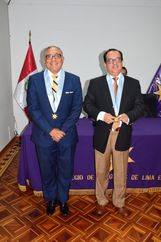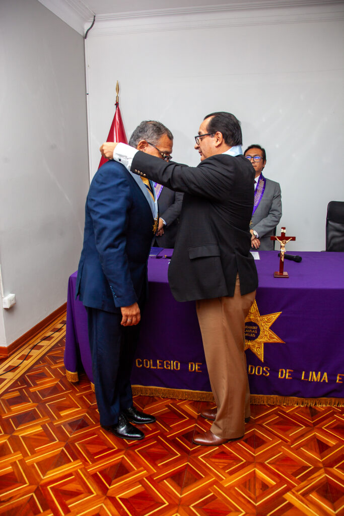 Durante la ceremonia protocolar, la imposición de la medalla de colegiado del CALE estuvo a cargo del Dr. Miguel Enrique Becerra Medina, Magistrado de la Corte Superior de Justicia de Lima Norte.