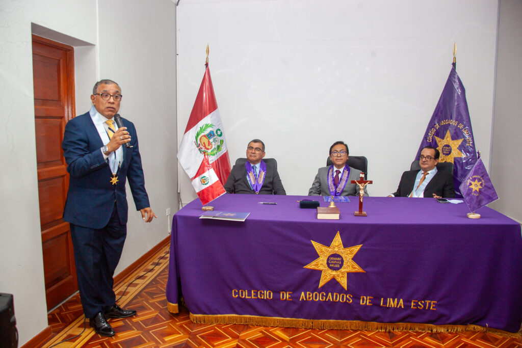 La mesa de honor estuvo presidida por el Decano del Colegio de Abogados de Lima Este, Dr. José Luis Silvestre Cortez, y contó con la participación de las siguientes autoridades institucionales: