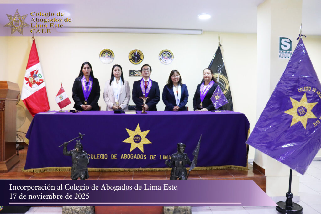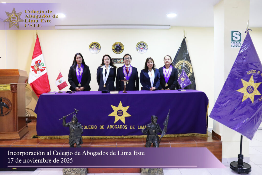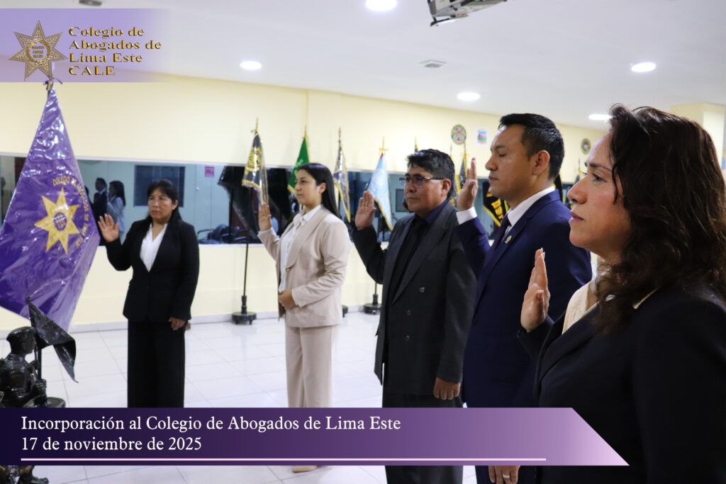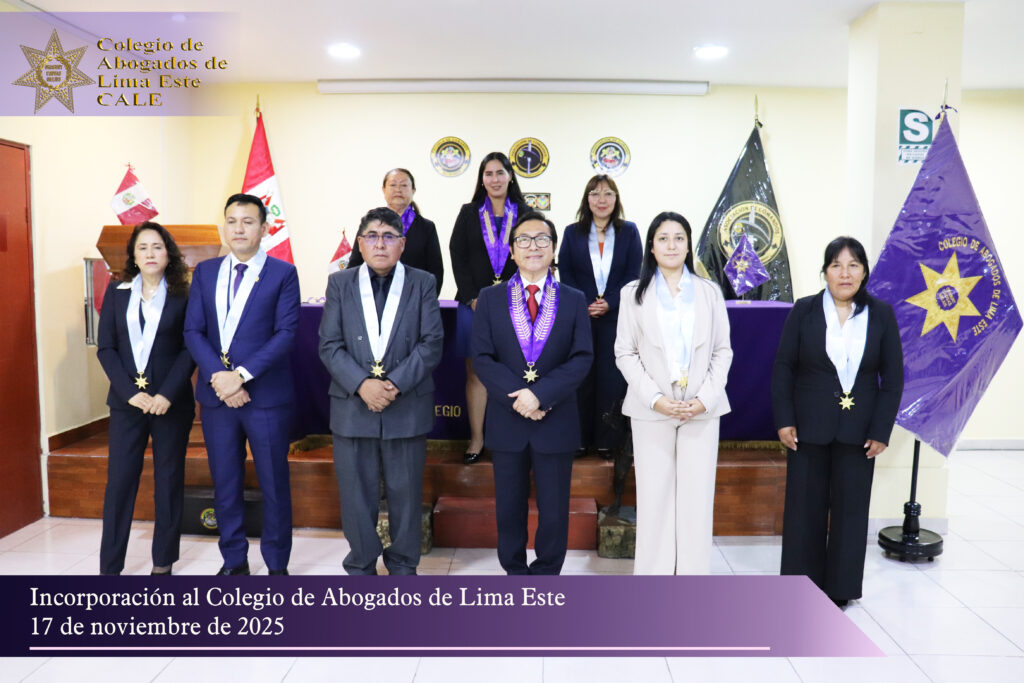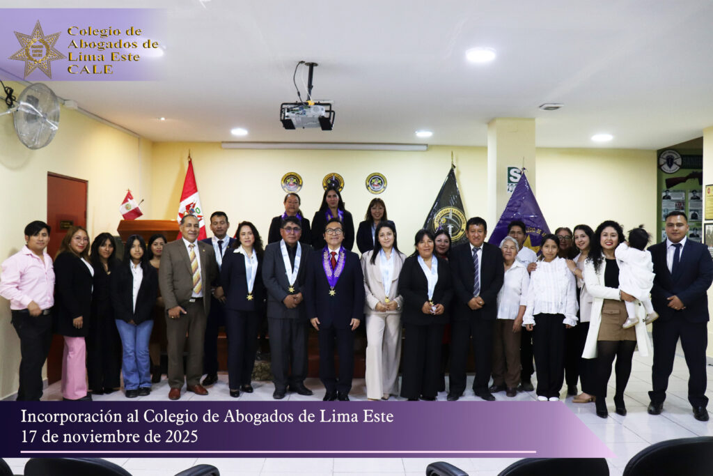 El Colegio de Abogados de Lima Este (CALE) llevó a cabo el pasado 17 de noviembre una solemne Ceremonia de Incorporación en el auditorio de la Asociación de Comandos del Perú, reafirmando su compromiso institucional con la formación, ética y desarrollo profesional de la comunidad jurídica.