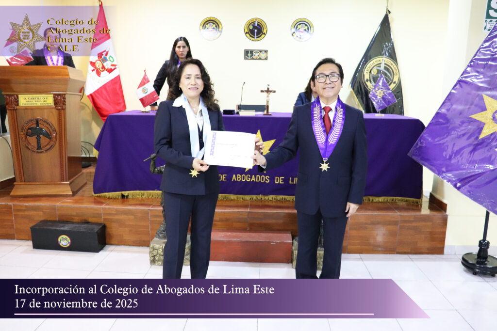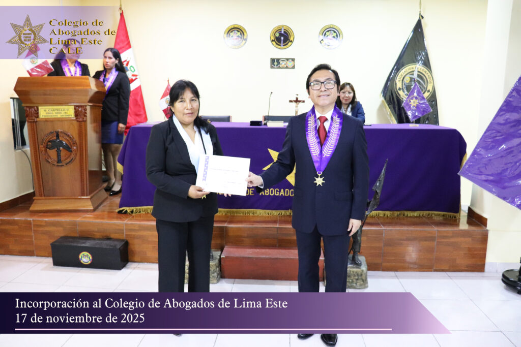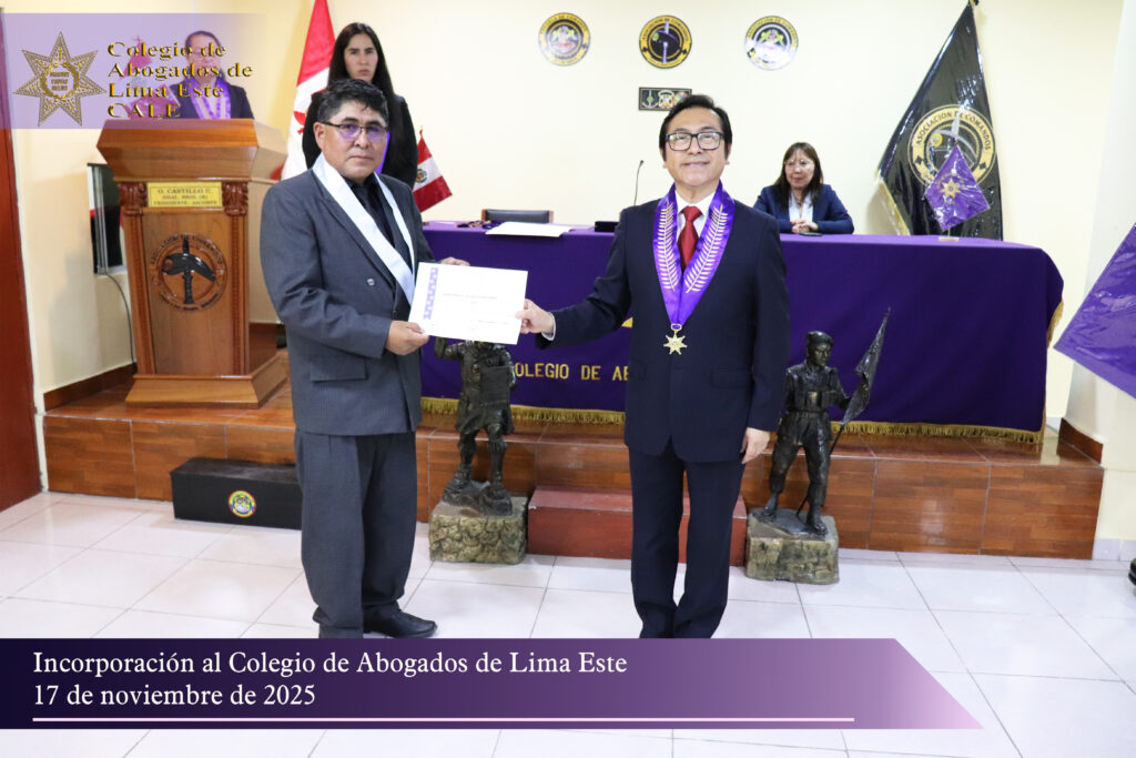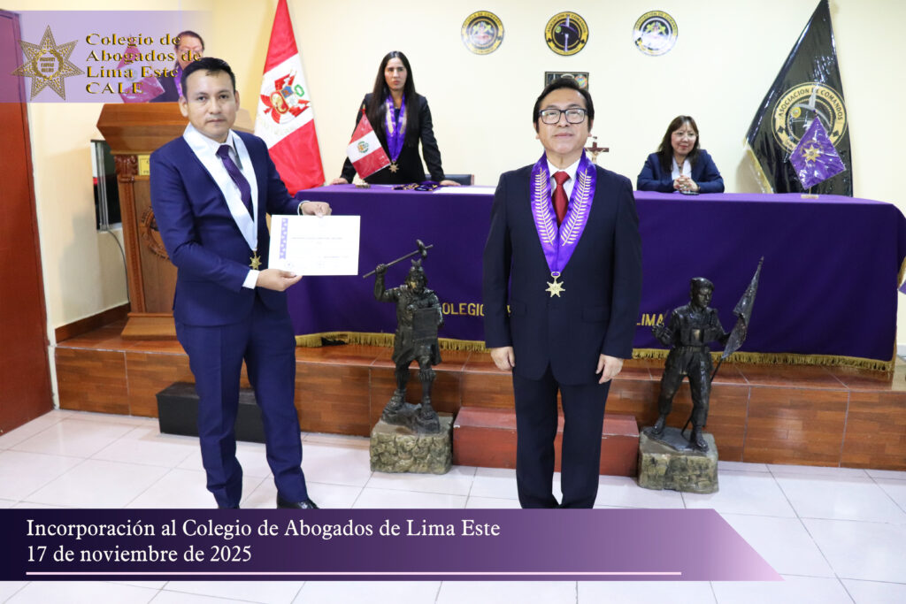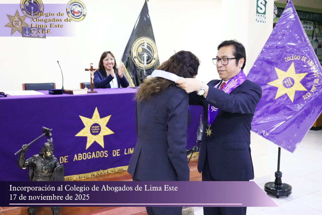 El Colegio de Abogados de Lima Este (CALE) llevó a cabo el pasado 17 de noviembre una solemne Ceremonia de Incorporación en el auditorio de la Asociación de Comandos del Perú, reafirmando su compromiso institucional con la formación, ética y desarrollo profesional de la comunidad jurídica.