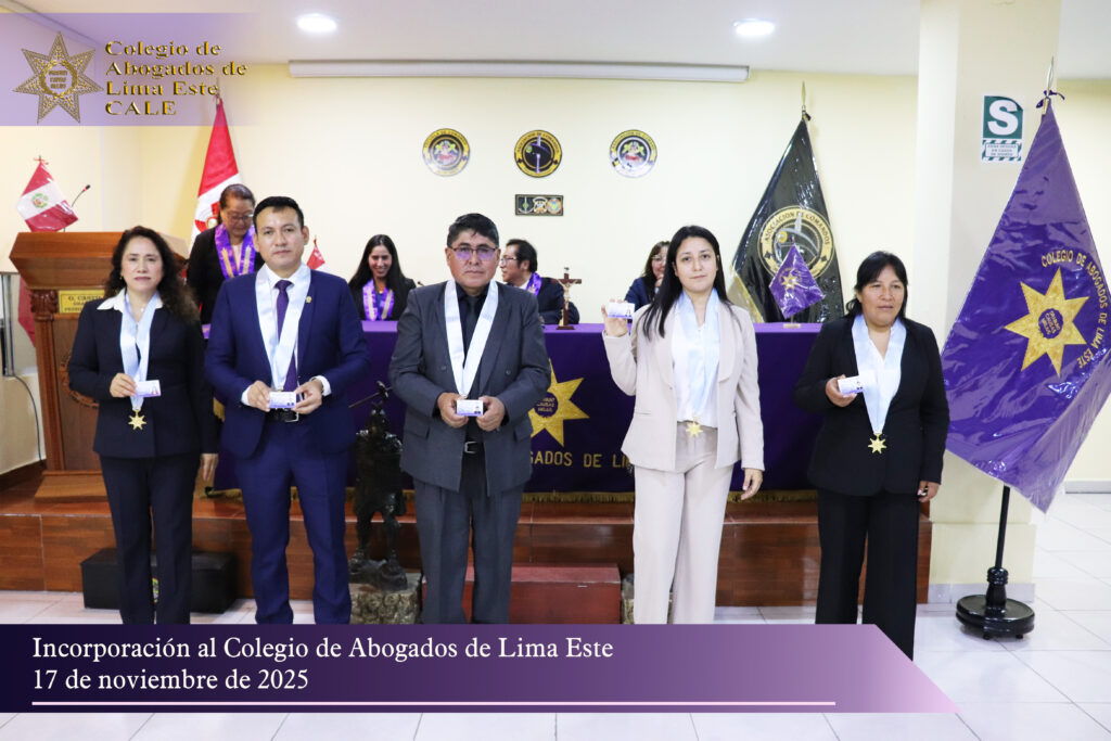 El Colegio de Abogados de Lima Este expresa su felicitación a los nuevos miembros y les desea éxitos en su trayectoria profesional, reafirmando su compromiso de seguir trabajando por el fortalecimiento de la abogacía y el bienestar de todos sus agremiados.
