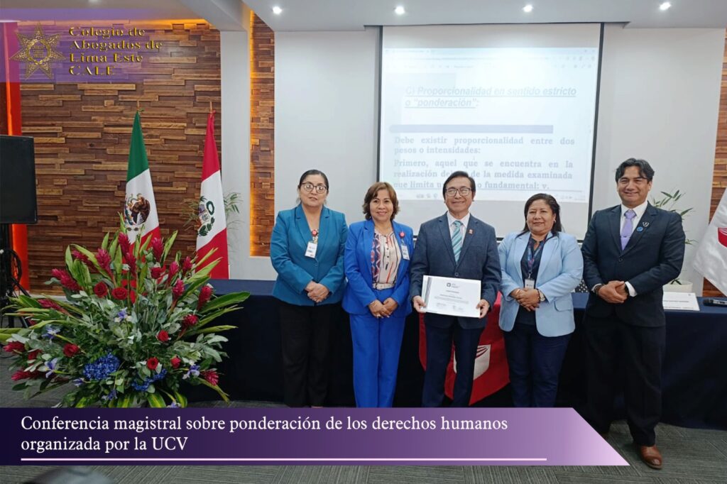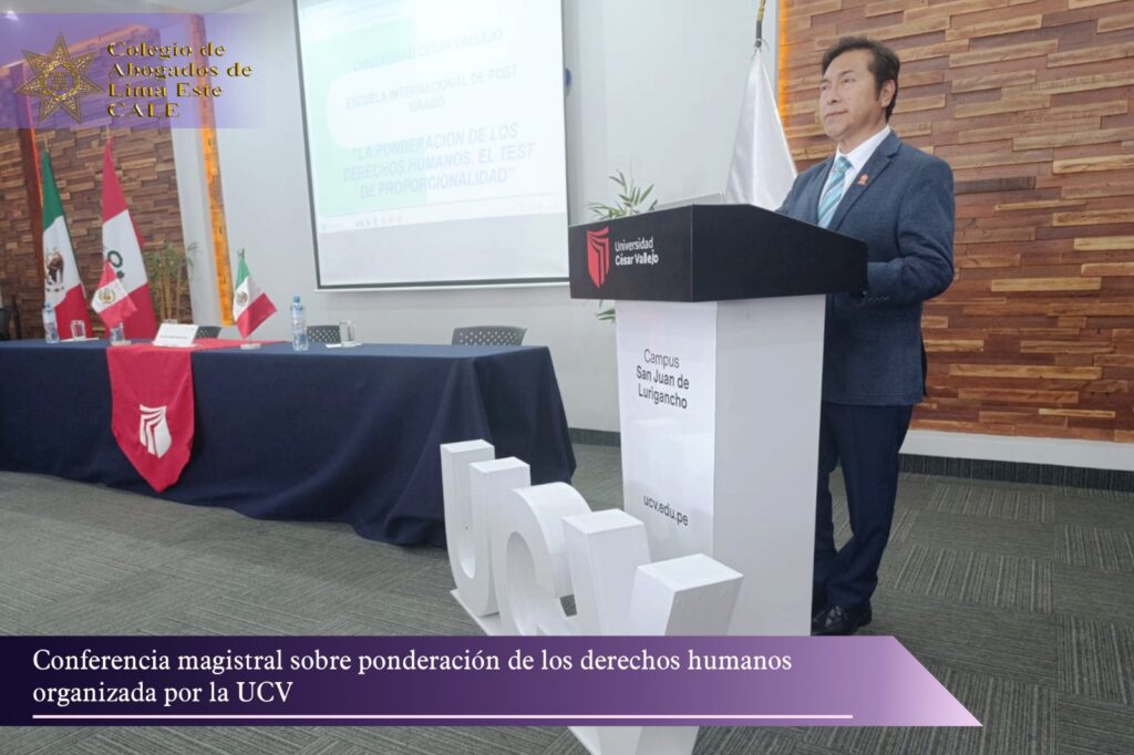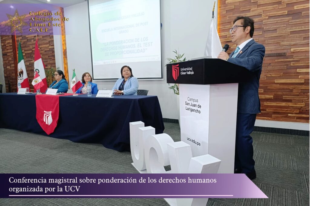 El Colegio de Abogados de Lima Este (CALE) participo en la conferencia magistral “La Ponderación de los Derechos Humanos: El test de proporcionalidad en el Perú”, organizada por la Escuela Internacional de Posgrado de la Universidad César Vallejo, campus San Juan de Lurigancho.